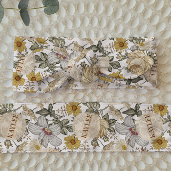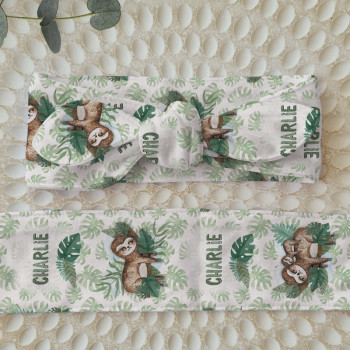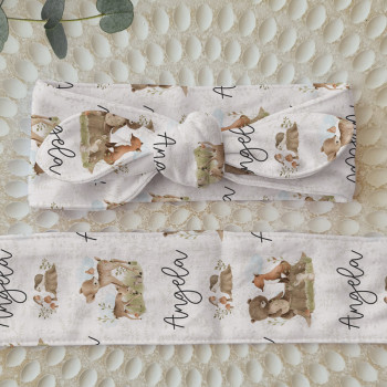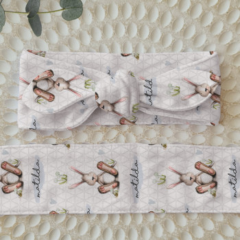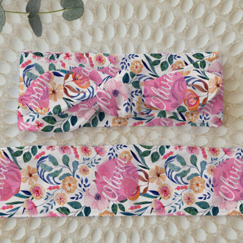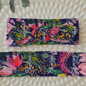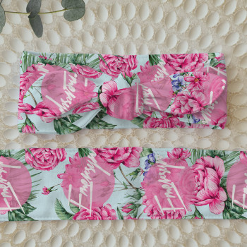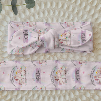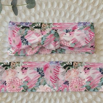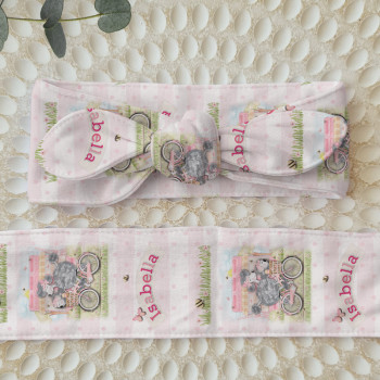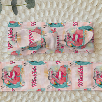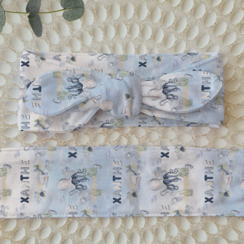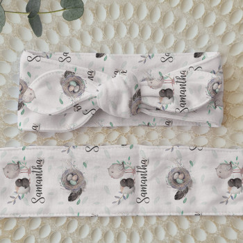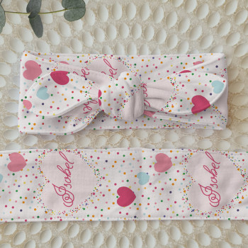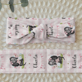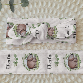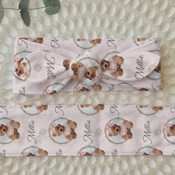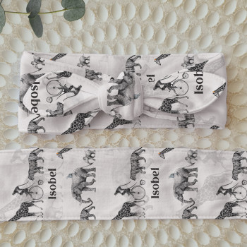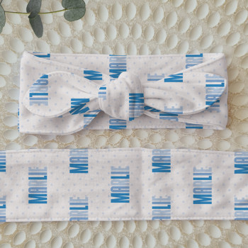Celebrate the birth of a newborn baby and give the perfect gift with our affordable Personalised Baby Headbands. Fully adjustable, our lovely top knot headbands make a great gift and keepsake and are perfect for those precious first baby photos. Our topknots fit comfortably on babies heads. Made from a soft jersey fabric they feature a repeating pattern on both sides of the headband, so no matter which way you tie the band the details will still be seen. With over 30 adorable designs for your little one, you are sure to find something that they will love. Not sure how to tie a baby headband? No Problemo, check out the instructional video in the next tab for details. An awesome new baby gift that is sure to be treasured for years to come.