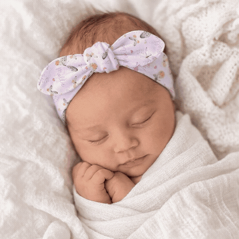 Celebrate the birth of a newborn baby and give the perfect gift with our affordable Personalised Baby Headbands. Fully adjustable, our lovely top knot headbands make a great gift and keepsake and are perfect for those precious first baby photos. Our topknots fit comfortably on babies headsMade from a soft jersey fabric they feature a repeating pattern on both sides of the headband, so no matter which way you tie the band the details will still be seen. With over 30 adorable designs for your little one, you are sure to find something that they will love. Not sure how to tie a baby headband? No Problemo, check out the instructional video in the next tab for details. An awesome new baby gift that is sure to be treasured for years to come.