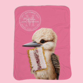 Personalised Australian Animal Baby Blankets! Featuring a gang of Aussie critters munching on iconic Aussie snacks (yes, that wombat is definitely eyeing your Tim Tams), these blankets are as adorable as they are practical.