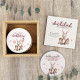 Our Personalised Baby Milestone Card Sets are the perfect way to capture every blink-and-you’ll-miss-it moment as your Mini Peep grows faster than your laundry pile. You’ll get 13 gorgeous wooden discs — from “Hello World” to “My First Birthday” (plus the weeks and months in between for all those squishy, snack-sized photo ops).