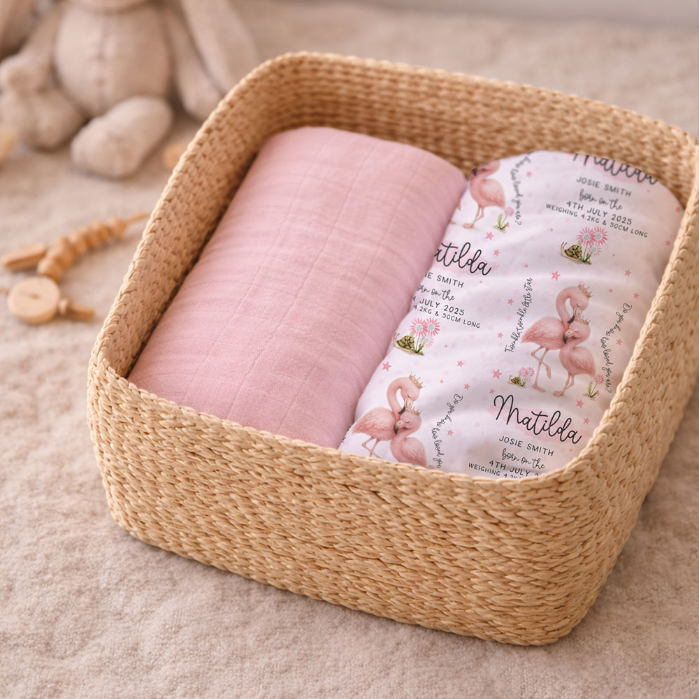 No stress. We offer rush order printing on our personalised baby gift boxes, so you can get your personalised baby blanket & muslin wrap set made fast without sacrificing quality.