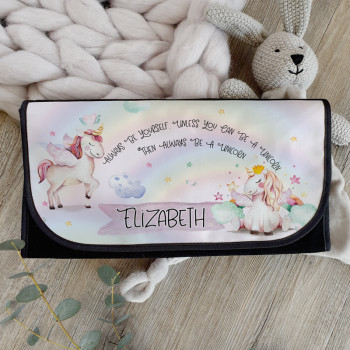Our Personalised Baby Nappy Clutch Bags are the ultimate fashion accessory for any busy parent. Lightweight with room to store nappies of all sizes, cremes, snacks, wipes, dummies, lotions and sanitisers in its durable pockets. Fill with all your baby essentials, wrap up and head out, perfect to grab on the way out the door, plenty of room for everything you and your Mini Peeps might need. Personalise with a child’s name, or multiple names.