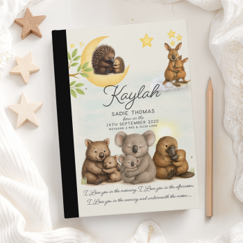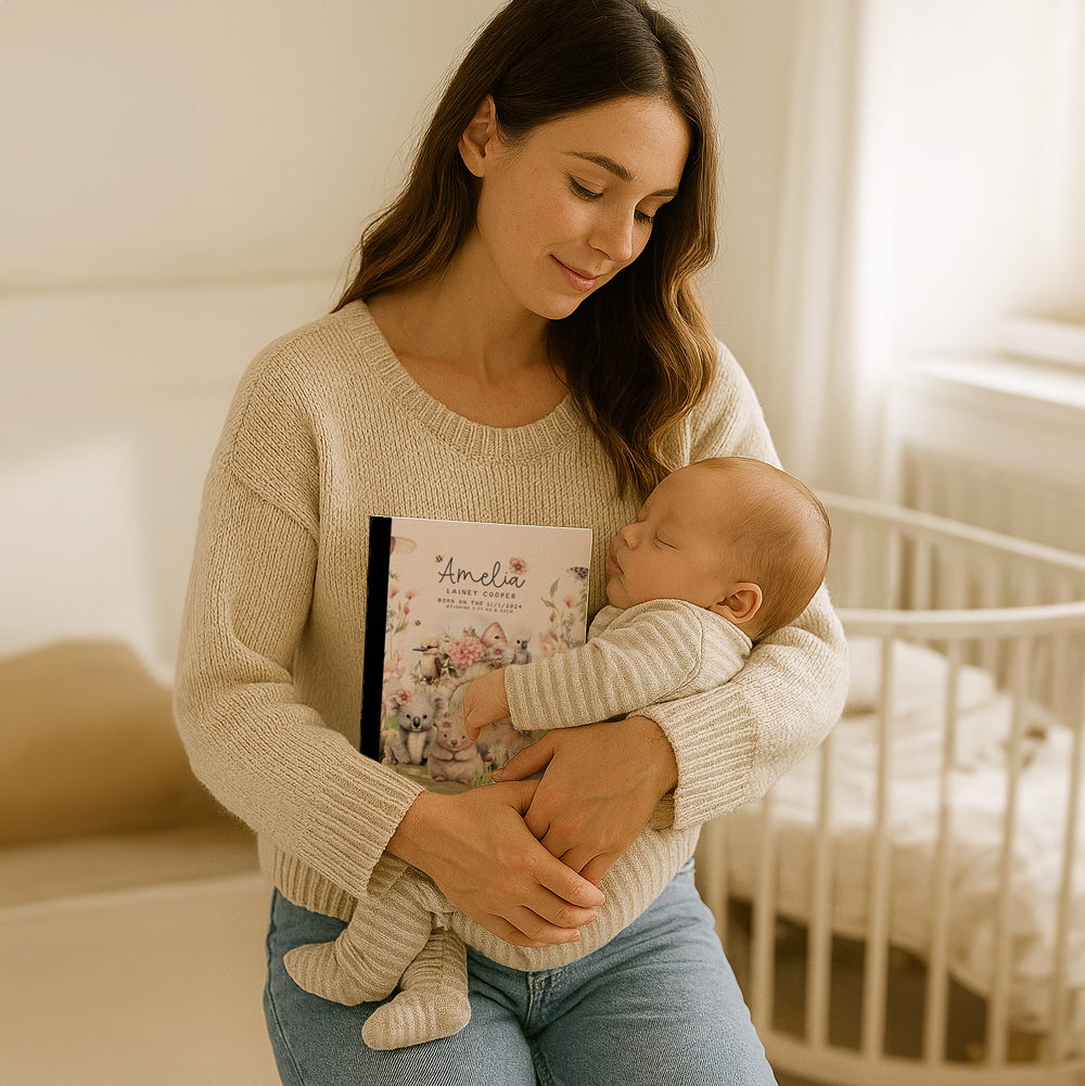 Capture every wild, messy, magical moment with our Personalised A5 Baby Journals — featuring 100 blank ruled pages ready for all the milestone madness (and occasional projectile-poo story).