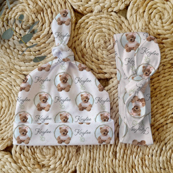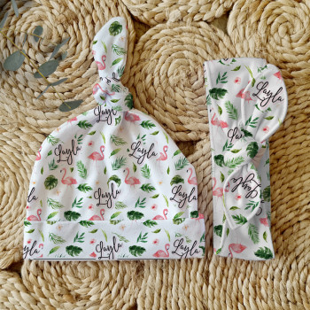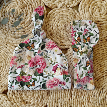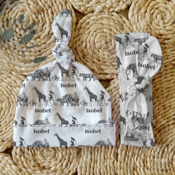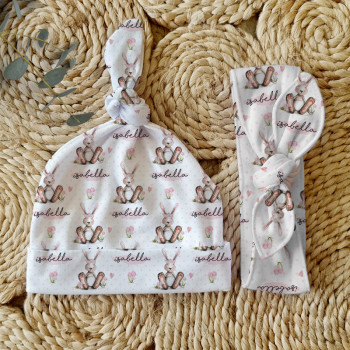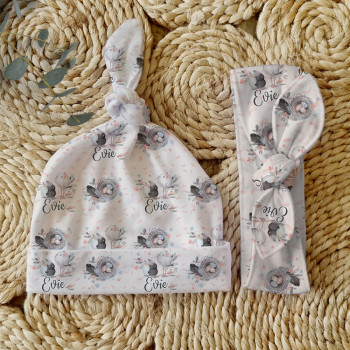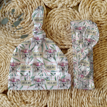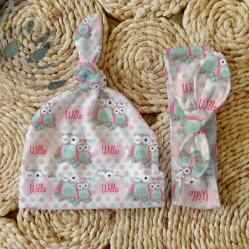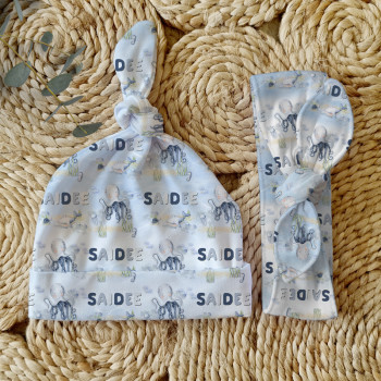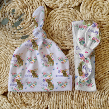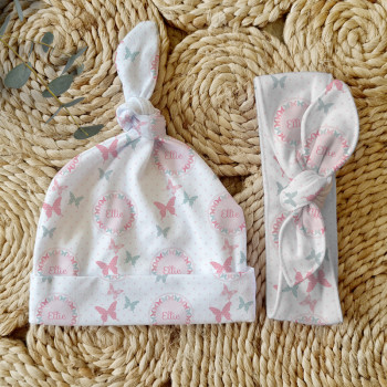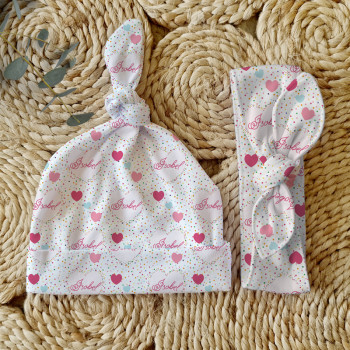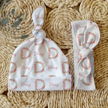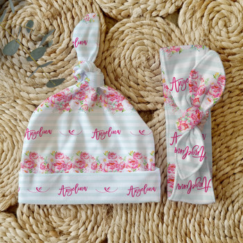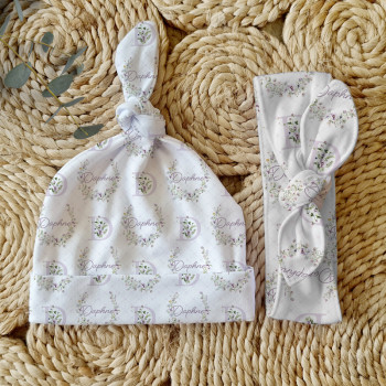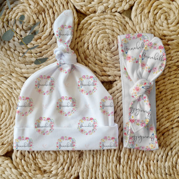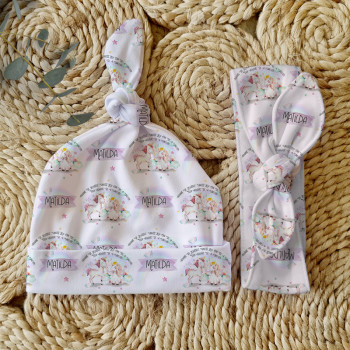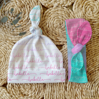 Celebrate the birth of a newborn baby and give the perfect gift with our Personalised Baby Beanie & Headband Sets. Featuring one of our lovely top knot beanies and a matching headband, these sets make a great gift and keepsake and are perfect for those precious first photos. An awesome new baby gift that will be treasured for years to come.