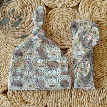 THE DEETS: Headband fits up to 12 months approx, Beanie Sizing to fit head circumference Small approx. 32-36cm or Large approx. 36-43cm | Machine Washable | Tumble Dry Low Heat | Illustrated & Printed in Brisbane, Australia