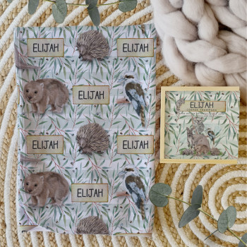 Deets:  Blanket Sizing 100cm x 70cm | Stretch Knit Fabric | Stain Resistant | Machine Washable | Tumble Dry Low Heat | Our boxes are made of quality crafted wood and feature a printed glossy slide out lid |Being made from natural materials occasionally there will be slight variation in the wood grain | Approx. 12.7cm x 12.7cm x 7cm | Wipe clean with a dry cloth Illustrated & Printed in Brisbane, Australia