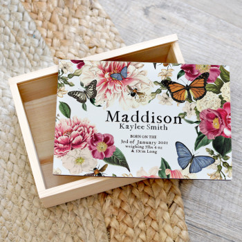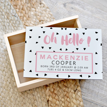 Introducing the ultimate treasure chest for all things Mini Peep: our Personalised Baby Keepsake Memory Boxes! Whether it’s that precious first lock of hair, photos from when they were slightly less messy, or the hospital ID bracelet that confirms they’re officially yours, this box is your go-to for sentimental hoarding with style.