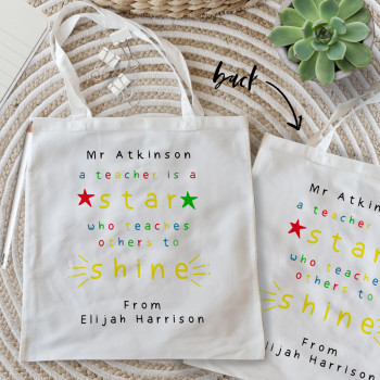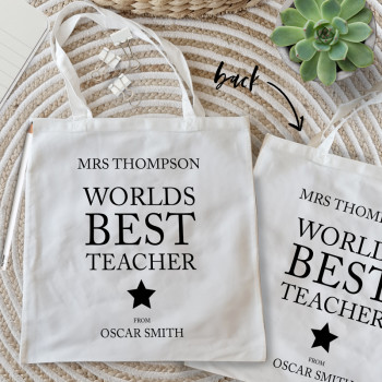 Our Personalised Teachers Tote Bags are the perfect gift for a teacher, sports coach or carer. Great for carrying all of that important stuff that Teachers need and best of all our Personalised Teachers Tote Bags are machine washable (please turn inside out) tumble dry on low heat.