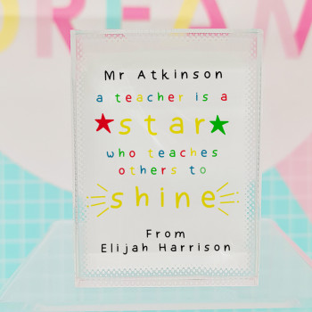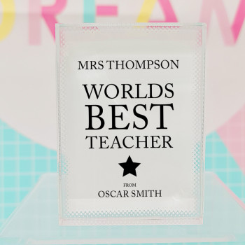Show your Teachers some love with our Personalised Glass Paper Weights. Super heavy and great for weighing down well…um paper, or for standing on a desk as an ornament, our paper weights are a great way to create a unique Teachers Gift thats your Childs teacher will hold on to for years to come.