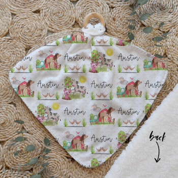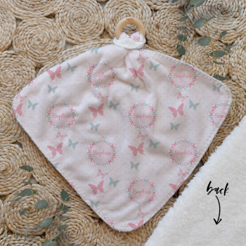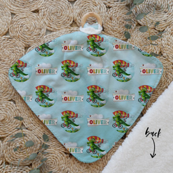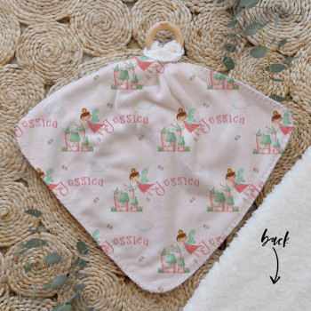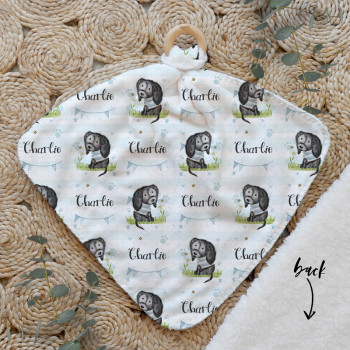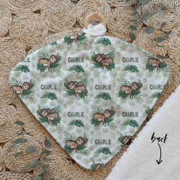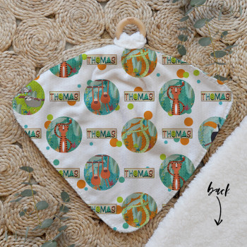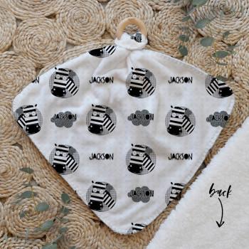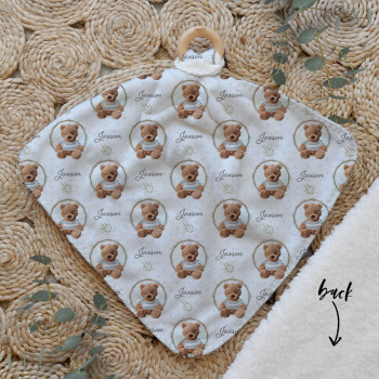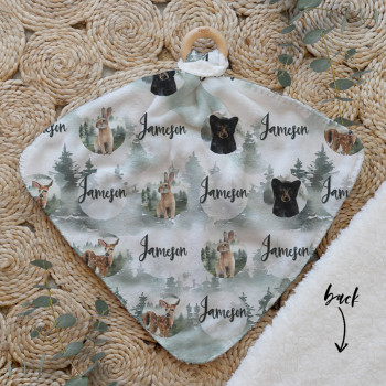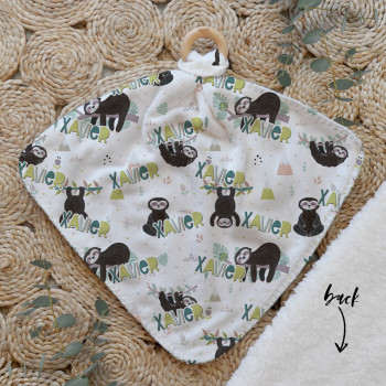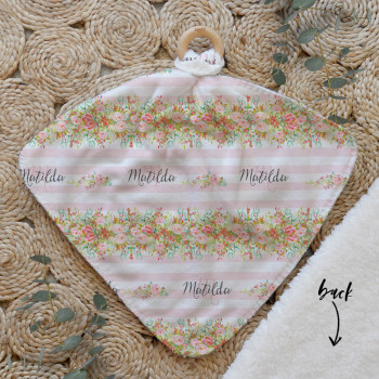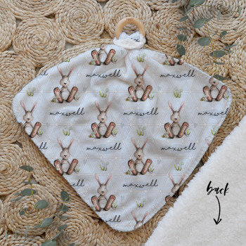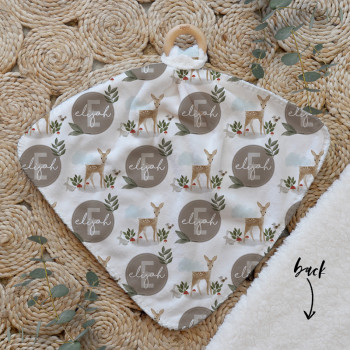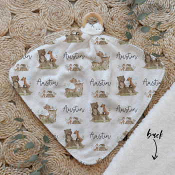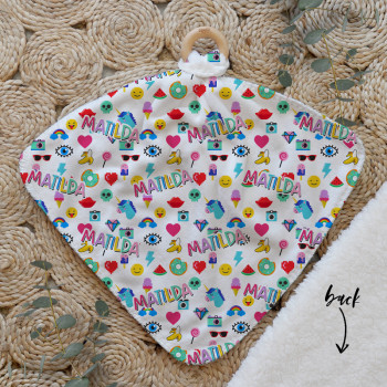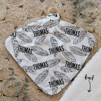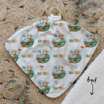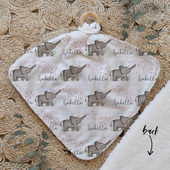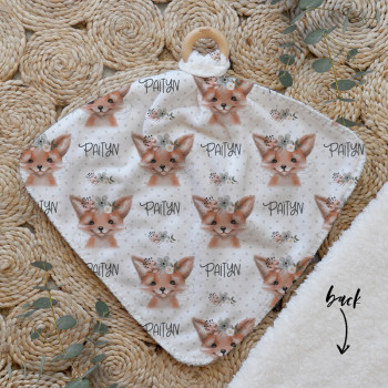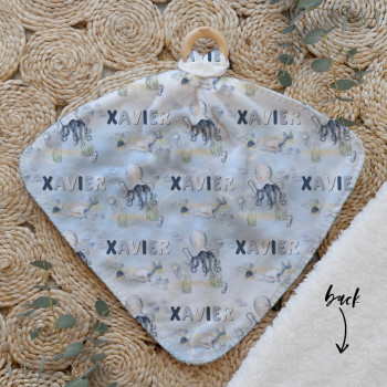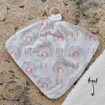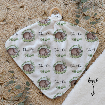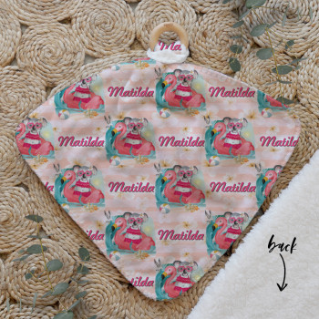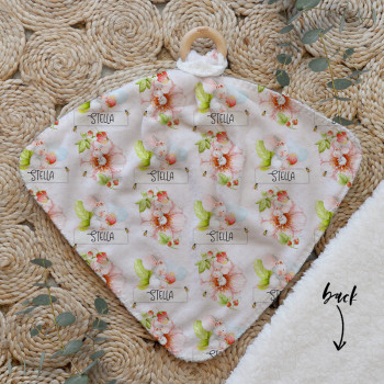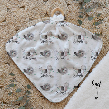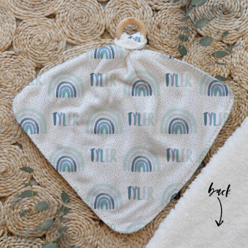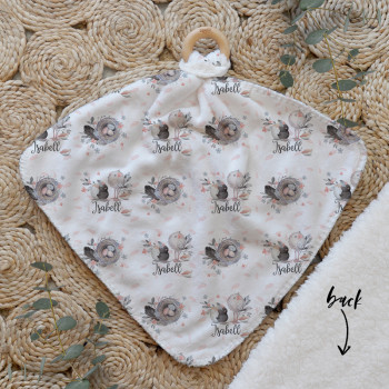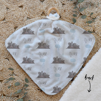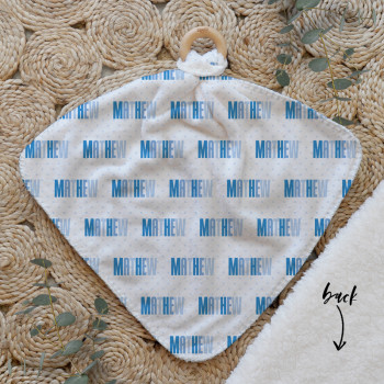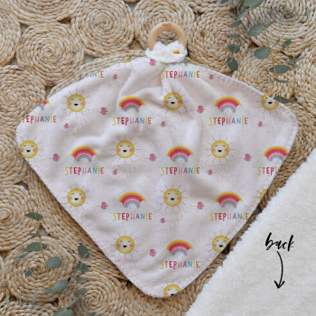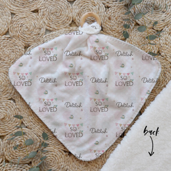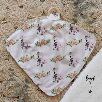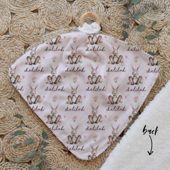 Our Personalised Baby Comforter Snuggle Buddiez are made from our specially formulated ultrasoft micro mink polyester fleece and finished with a beech wood ring. Soft and cuddly, hypoallergenic and sure to become your Mini Peeps most fave snuggle toy for years to come. Printed on the front with your chosen design and the back covered with a dreamy soft luxe sherpa fleece, finished with a durable stitch that will withstand years of use. A great alternative to our Jellycat Snuggle Comforters + a gift & Keepsake. Our teethers are also available without the wooden ring over here