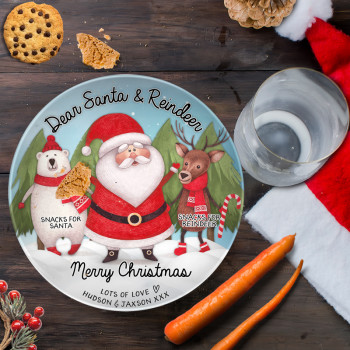 Our Personalised Santa Cookies & Treats Plates are perfect for placing cookies and snacks for Santa on Christmas Eve and leaving them (and some carrots, don’t forget the reindeer!!) for Santa to munch on during his late-night present dropping visit. Perfect for your Mini Peeps to wake on Christmas Morning and find the plate empty apart from for just a few crumbs.
