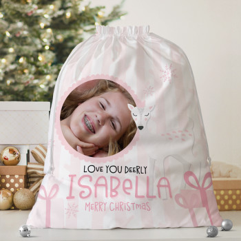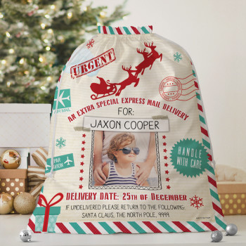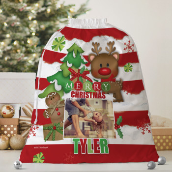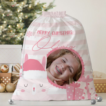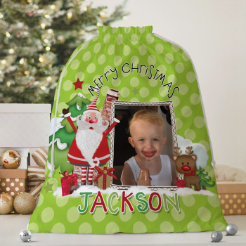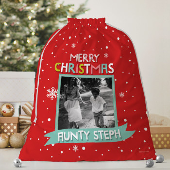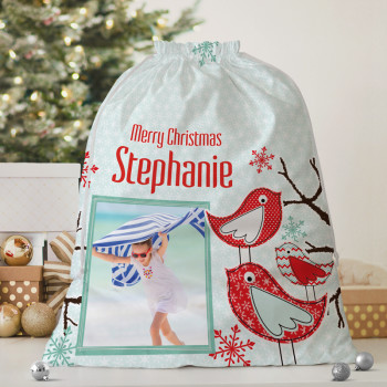 Put Your Fave Human or Pet Photo on a Santa Sack and get personalised this Christmas! Choose your Fave Child, Dog, Cat, Aunt, Uncle, Brother Sister or even grandparent, upload their picture and we will print them along with their name onto one of our gorgeous Santa Sacks. When Santa shows up he wont believe his eyes! With everything from bright bold colours, glitters and metallics, rudolph, penguins, santa, and cheeky christmas birds (phew, thats a lot huh?) you are sure to find something you will love.