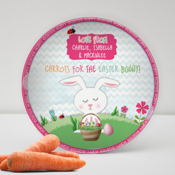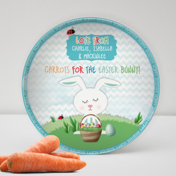 Hippity hop! The Easter bunny wont believe his eyes with our drop proof Personalised Melamine Kids Easter Carrot Plates. Just add carrots! Personalise your mini peeps easter bunny carrot plate by adding a from name.