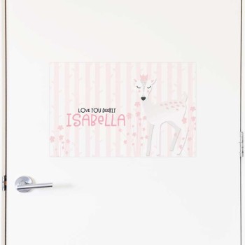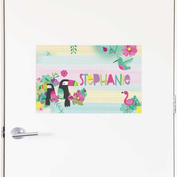 Our Personalised Kids Door Sign Adhesive Fabric Stickers are perfect for sticking to doors, walls or above beds. Made from a durable and adhesive fabric they are super easy to apply, just peel and stick.No sticky residues or wall damage, Easy to remove, and easy to reuse making them perfect for rentals. Our stickers will stick to doors, walls, fridges, glass and even brick. Our beautifully illustrated designs are gorgeous & quirky, bold and bright, and a great way to make your child’s room truly unique!