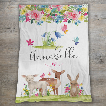 Our Fleece Personalised Kids Blankets feature a custom name and are made from our specially formulated ultrasoft micro mink polyester fleece. A soft plush fabric which is hypoallergenic, stain resistant and makes a great snuggle buddy or playmat. Our luxurious kids blankets are sumptuously soft, at around 305gsm they provide just the right amount of warmth for your Mini Peep! Printed on one side and white on the reverse, our blankets are finished with a durable stitch that will withstand years of use. Create a custom name blanket, a memorable keepsake that your Mini Peep will have for years to come.