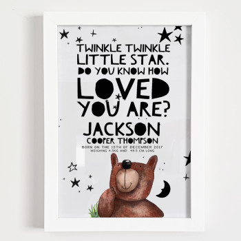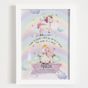 Perfect for nurseries, playrooms and kids’ bedrooms, this wall art is professionally printed on premium paper and set inside a sleek frame – ready to hang or display. Whether you’re searching for a unique baby shower gift, a personalised birthday present, or the finishing touch to your child’s bedroom decor, this framed print is sure to become a treasured piece.