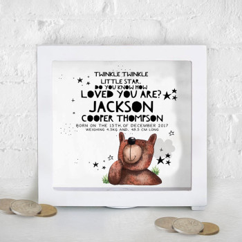 Personalised Kids Money Box Piggy Banks, first birthday gift, kids money box, kids piggy bank, kids money box with name, custom name piggy bank, personalised room decorations, personalised baby gift, personalised kids gift ideas, new baby gift, new baby keepsake, baby shower gift