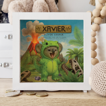Crafted from white painted wood with a chic vintage finish, these piggy banks come with a coin slot on top and a re-closable hole at the bottom—so your child can access their funds whenever they need to make a critical purchase (like lollies or more toy dinosaurs). Plus, the clear acrylic front lets them watch their wealth grow before their very eyes!