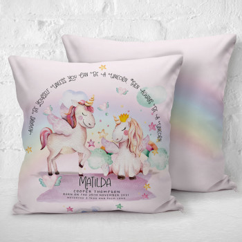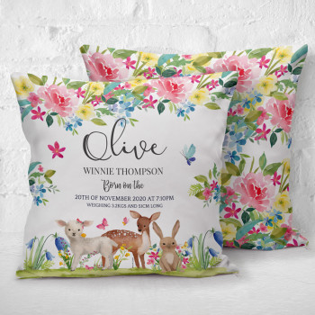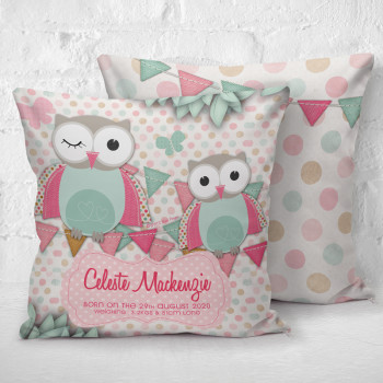 Celebrate the birth of a newborn baby and give the perfect gift with our Personalised Baby Birth Detail Cushions. Great as an accent on a bed, Perfect for a Nursery, comfy for nap time and will compliment any child’s nursery or room. An awesome christening, birthday or new baby gift that will be treasured for years to come.