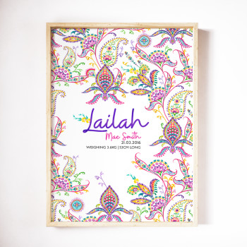 Now it’s time to add a name. Some products will also require birth details or additional information. These fields are optional and if you wish to have only a name printed onto your items please just write “leave blank” in these areas. Once you have completed all the required information the add to cart button will turn green which means hooray + high fives you have just created your first personalised product.