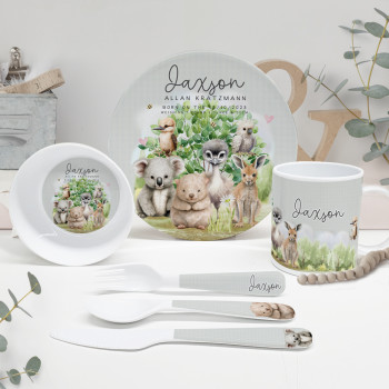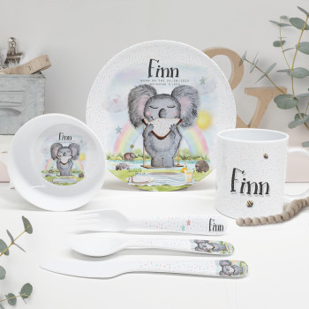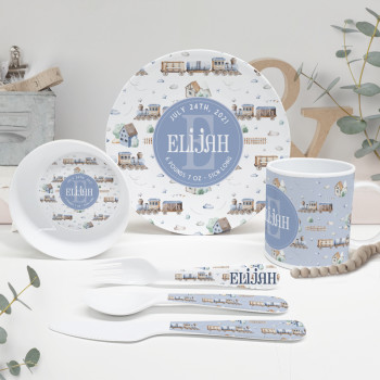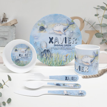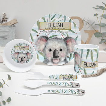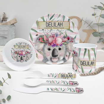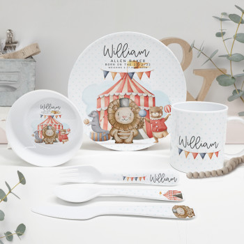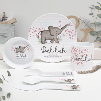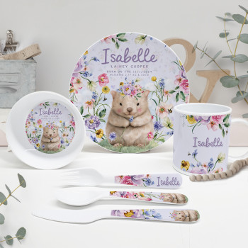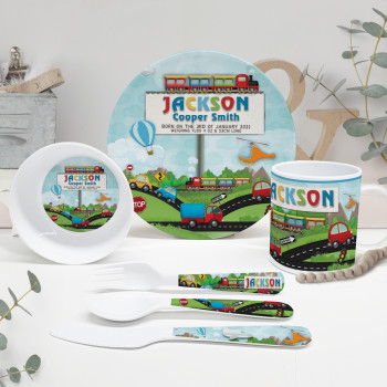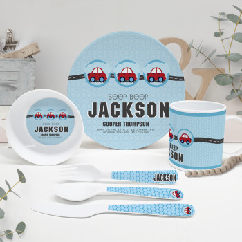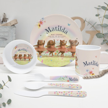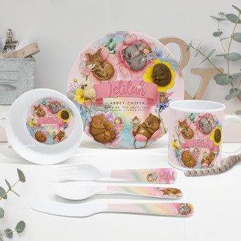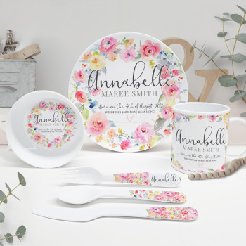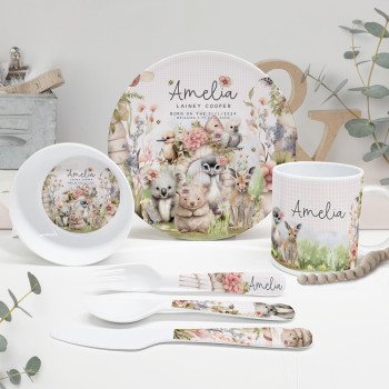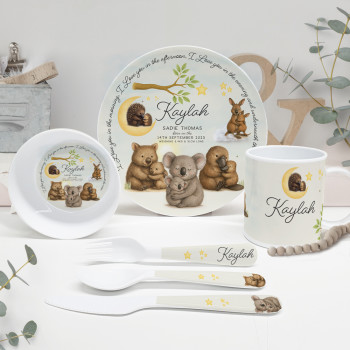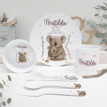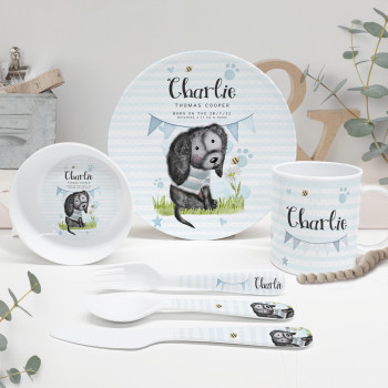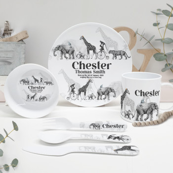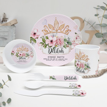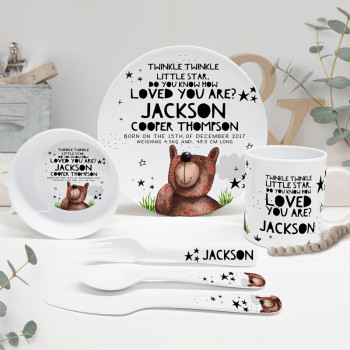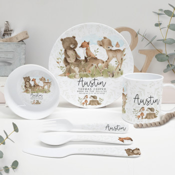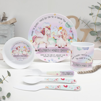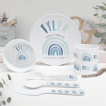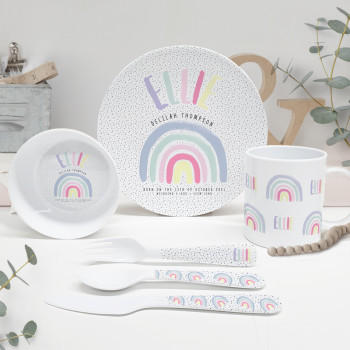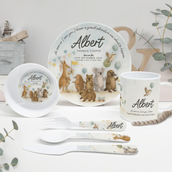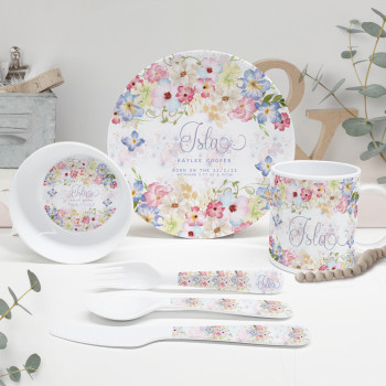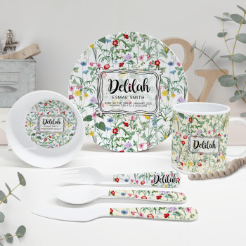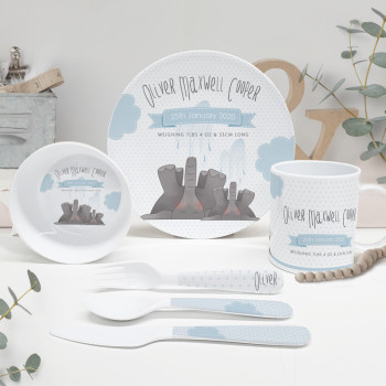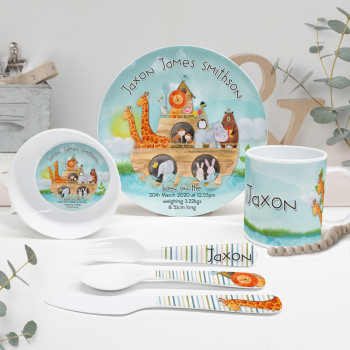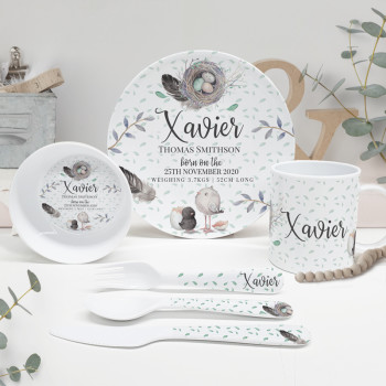 Make mealtime extra special with our Personalised Melamine Baby Dinner Gift Sets, now beautifully packaged in a personalised gift box with handles, printed with your child’s birth details and a special message — the perfect keepsake they’ll treasure for years to come. Each set includes a Plate, Bowl, Mug, Knife, Fork & Spoon, all bright, glossy, and Mini Peep tested and approved! It’s the ultimate dinner accessory and a thoughtful Birthday Gift, Christening Gift, Naming Day Gift, or New Baby Keepsake.