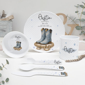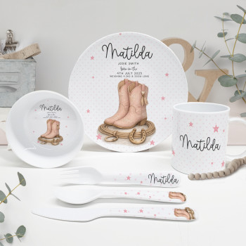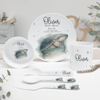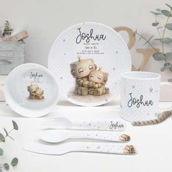 Make mealtime extra special with our Personalised Melamine Baby Dinner Gift Sets, now beautifully packaged in a personalised gift box with handles, printed with your child’s birth details and a special message — the perfect keepsake they’ll treasure for years to come. Each set includes a Plate, Bowl, Mug, Knife, Fork & Spoon, all bright, glossy, and Mini Peep tested and approved! It’s the ultimate dinner accessory and a thoughtful Birthday Gift, Christening Gift, Naming Day Gift, or New Baby Keepsake.