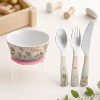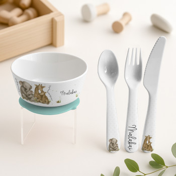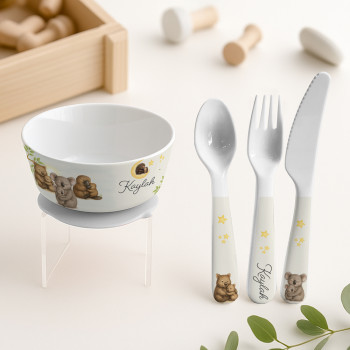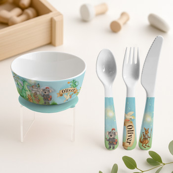 Personalised Baby Feeding Sets. Suction Bowl, Spoon, Fork & Knife
