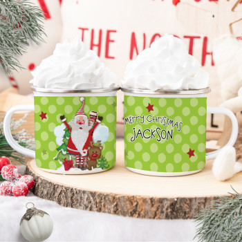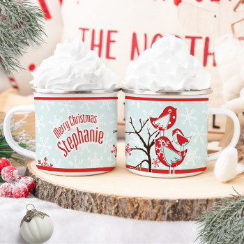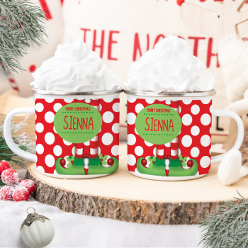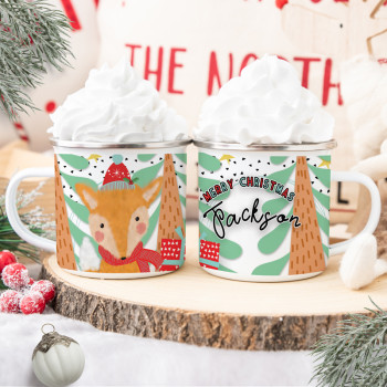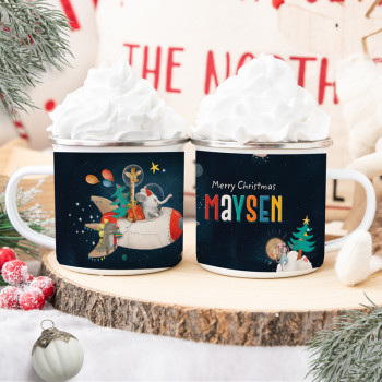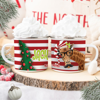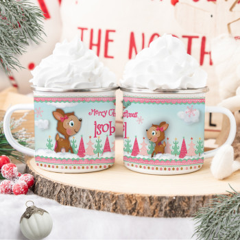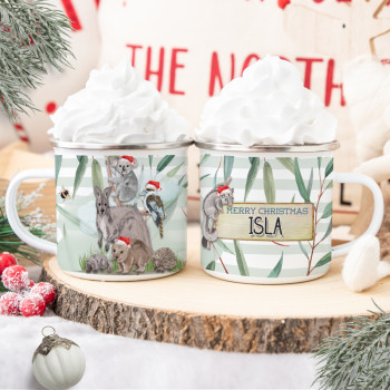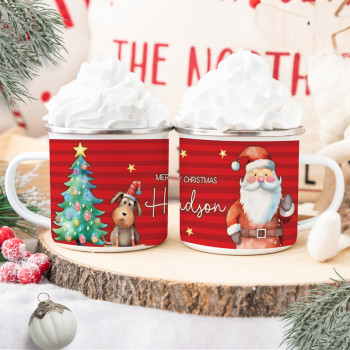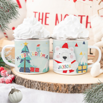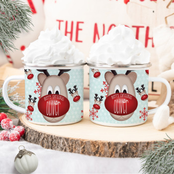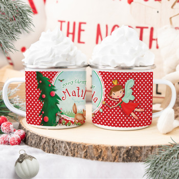 Our Personalised Kids Enamel Christmas Mugs are bright and glossy and the ultimate Christmas accessory. Our mugs are made from enamel coated carbon steel making them perfect for dinnertime, camping, picnics, beach days and more. Makes a great Birthday Gift, Personalised Christening Gift, Naming Day Gift, or New baby Keepsake.