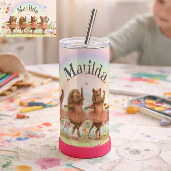 Crafted from high-quality stainless steel and finished in crisp white (perfect for your custom design), this 440ml tumbler is built to last — and built to be loved. These match perfectly with our Kids Melamine Dinner Sets