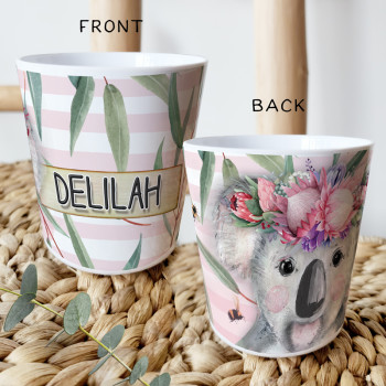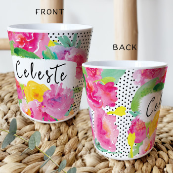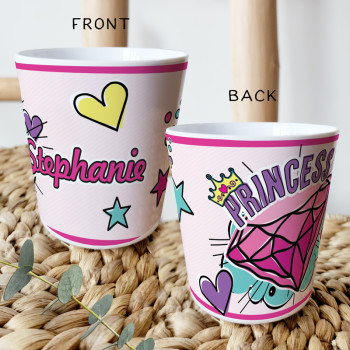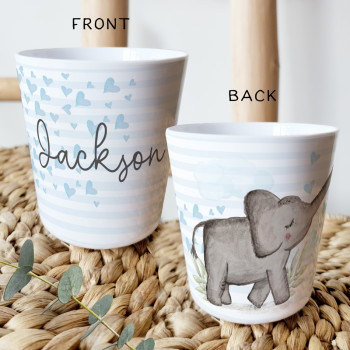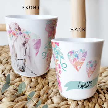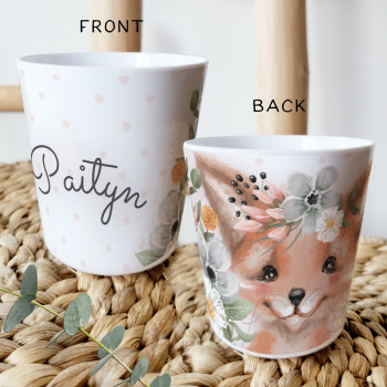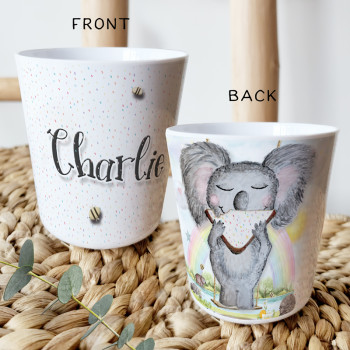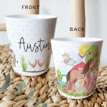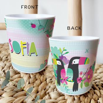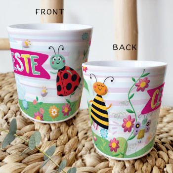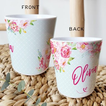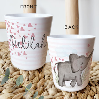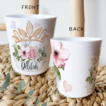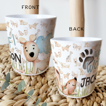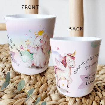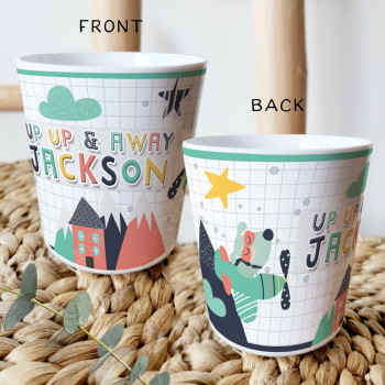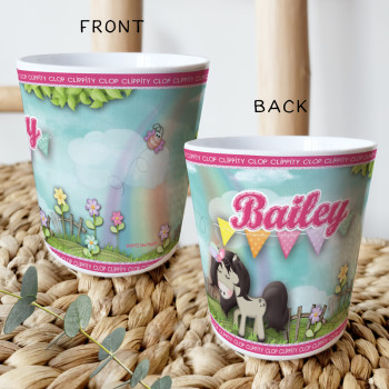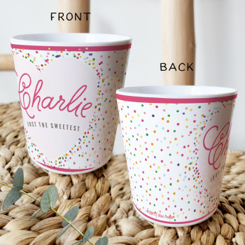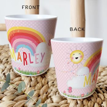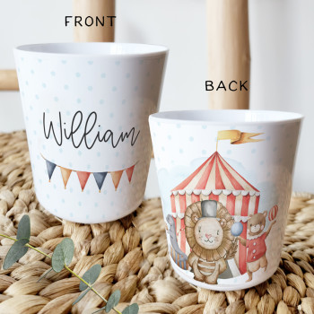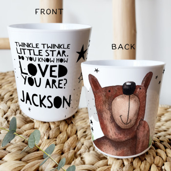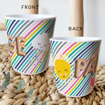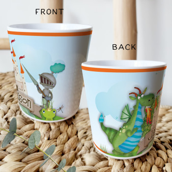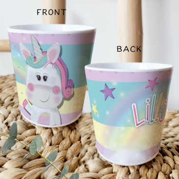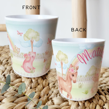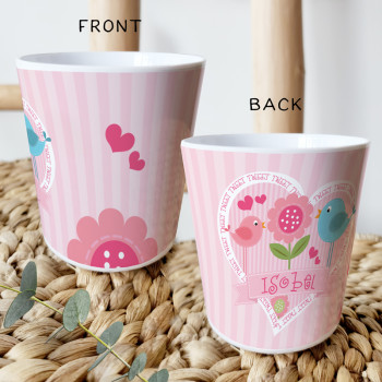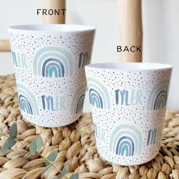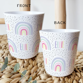 Perfect for Toddlers, our Personalised Melamine Kids Cups are bright and glossy and the ultimate dinner accessory. Add a custom message to make a great Birthday Gift, Personalised Christening Gift, Naming Day Gift, or New baby Keepsake.