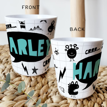 Deets: 240ml capacity | manufactured from lightweight a BPA free melamine plastic | Dishwasher Safe (Top Shelf) | Wash before use. Inspect product before each use and dispose of at first sign of damage or weakness. Illustrated & Printed in Brisbane, Australia