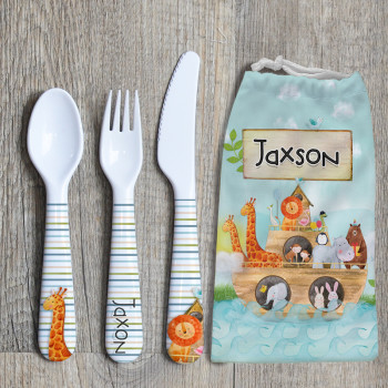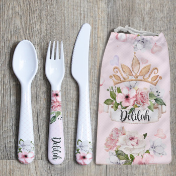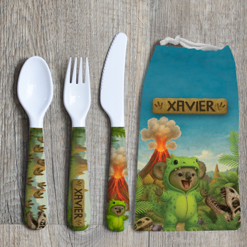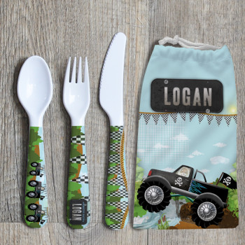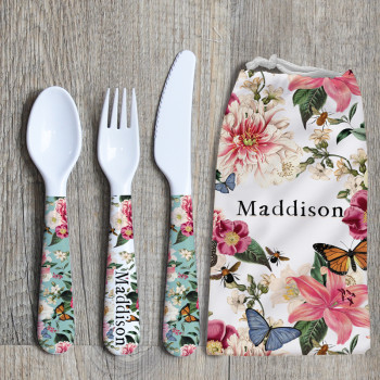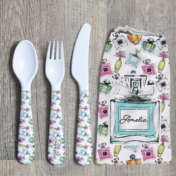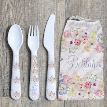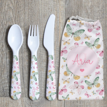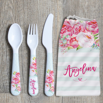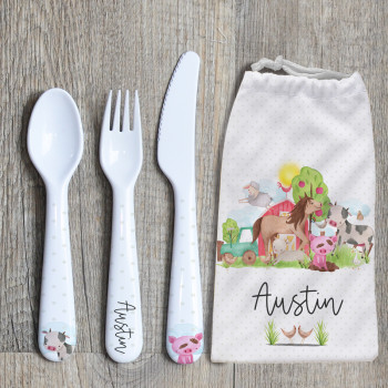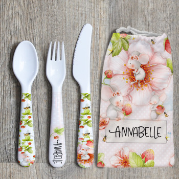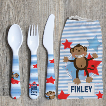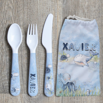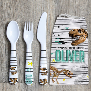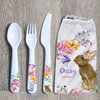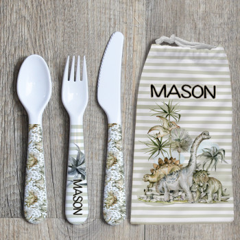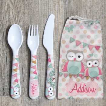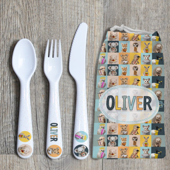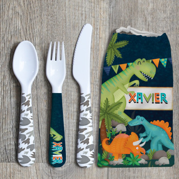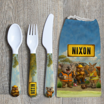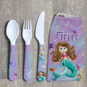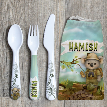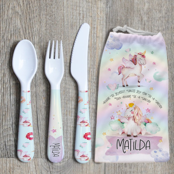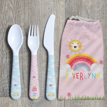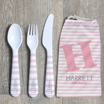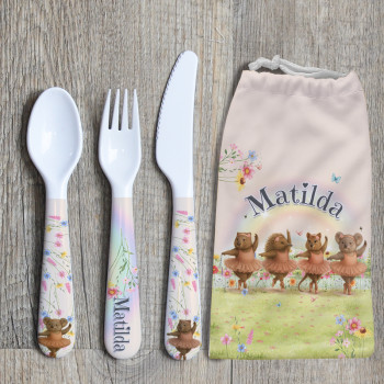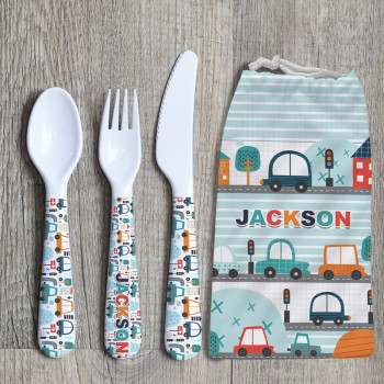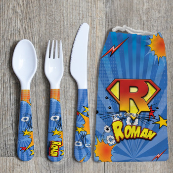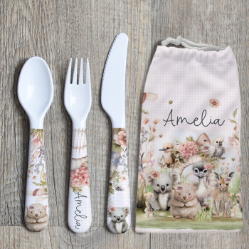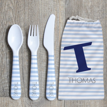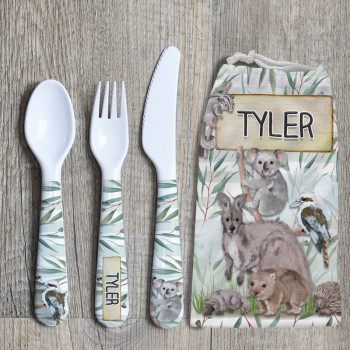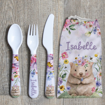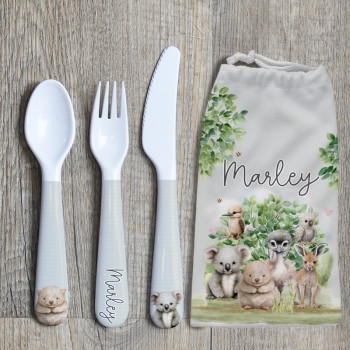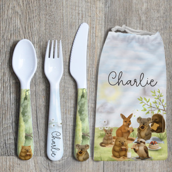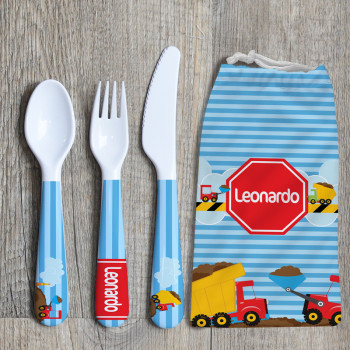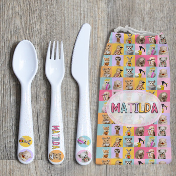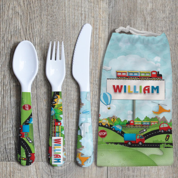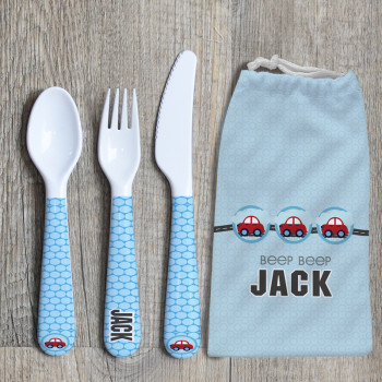 Personalised Melamine Kids Cutlery Sets, Fork, Knife, Spoon + Bag