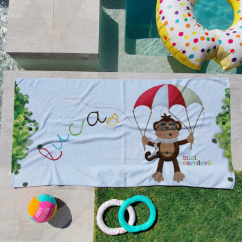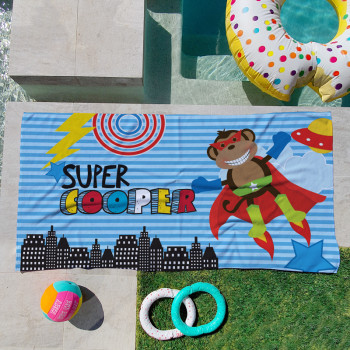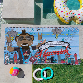 Say goodbye to the days of “which towel is mine?” with our Personalised Kids Beach Towels—the ultimate beach companion! Made from a hypoallergenic velour front and a cotton terry back, these towels are soft enough to make your mini peep feel like they’re drying off with a cloud. They’re super absorbent, fast drying, and the perfect mix of practical and awesome. Looking for our SAND FREE beach towels? Check them out over here