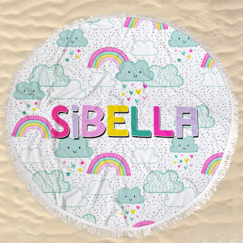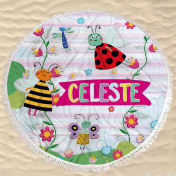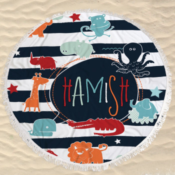 Our Personalised Kids Round Beach Towels & Play Mat Rugs make finding your beach towel on those busy beaches a breeze and also double as a great play mat, picnic rug or bedroom rug. They are great for pool time, swimming lessons, Picnics, tummy time for the really mini peeps or a day at the beach!