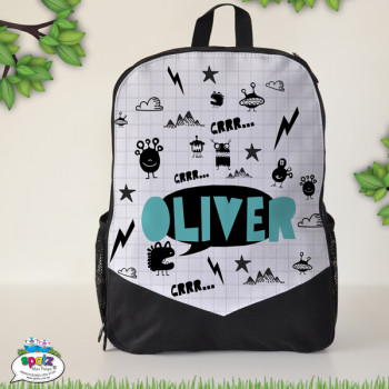 We made them out of super sturdy black canvas to hide all the dirt they’ll inevitably gather (you’re welcome) and a printed fabric front that screams “coolness” louder than your child when they spot an ice cream truck. Whether it’s for school, kindy, travel, or just their never-ending snack collection, this backpack is the one that’ll survive it all.