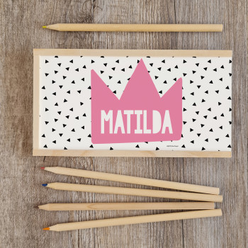 Our Personalised Kids Wooden Pencil Boxes come packed with 12 pencils ready for action — perfect for doodling dinosaurs, designing dream houses, or signing important sibling peace treaties. Each box is personalised with their name and an adorable illustration, so there’s no mistaking who the reigning ruler of the pencil kingdom is.
