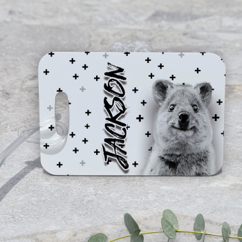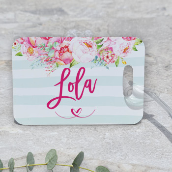 Our bag tags are so easy to use,  just slip the bag tag through a bag handle and then back through the plastic loop. Our Bag Tags are printed on both sides and are treated with our special UV resistant top coat for extra durability & scratch resistance. Just add a first name, nickname or both!