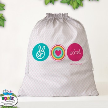Our smaller bags are great for Daycare or Kindy, ballet, dance, sports, sleepovers, trips to the beach or in the car filled with awesome things to keep your mini peeps entertained on long road trips. Our larger bags are great for daycare & kindy bedding or for use as a laundry bag. Best of all our Personalised Drawstring Bags are machine washable (please turn inside out) tumble dry on low heat.