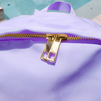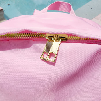 Size: approx. 38cm Tall x 28cm Wide and 13cm deep | Gold Accents | Dual zipper closure | Made from a durable nylon fabric | Hanging handle at the top | Front Zippered Pocket | 2 Outer side pockets | Internal water resistant zippered section | Padded and adjustable straps and best of all the perfect size for Mini Peeps or great to use as a baby bag!