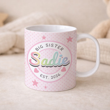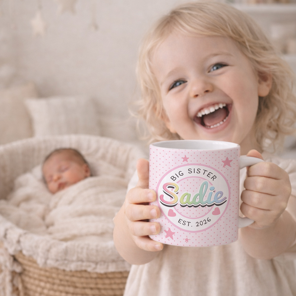 Someone just got a very important promotion… 🎉 Becoming a Big Sister or Big Brother is a pretty big deal, and what better way to celebrate than with their very own personalised mug?
