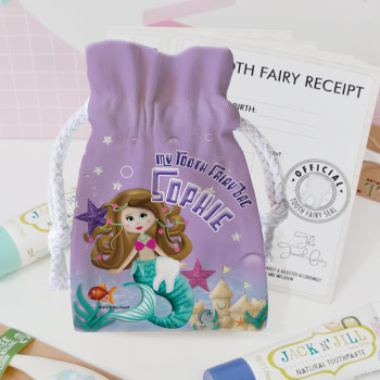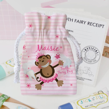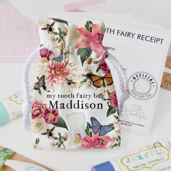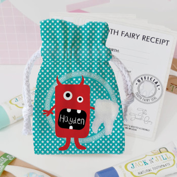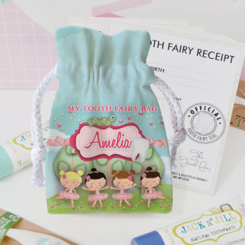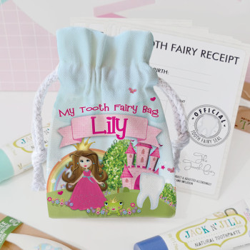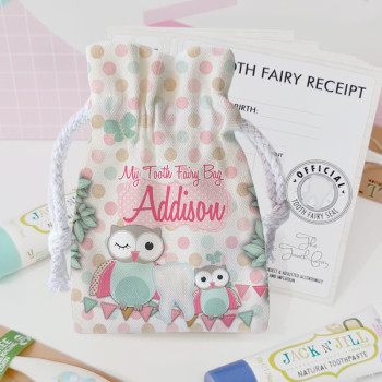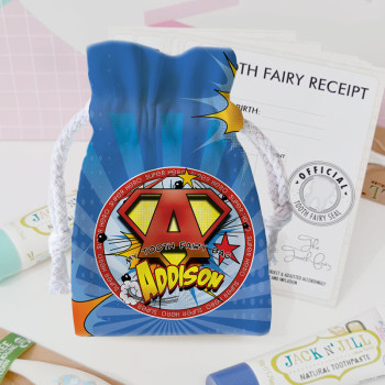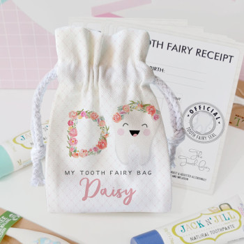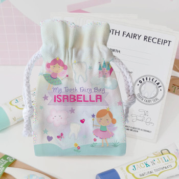Introducing our Personalised Tooth Fairy Bags, specially designed to hold those precious tiny teeth! Each bag features a convenient drawstring top, making it a breeze to slip the teeth in and retrieve the cash from the Tooth Fairy. These bags make a wonderful First Tooth Keepsake that you can cherish for years to come. With a variety of designs to choose from, the Tooth Fairy won’t believe her eyes when she sees these adorable bags! Get yours today and make tooth-losing moments even more magical!