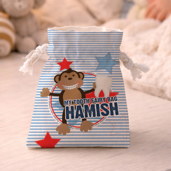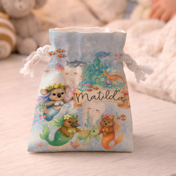 Each canvas bag is customised with your child’s name making it extra special and impossible for the Tooth Fairy to mix up. No more mystery teeth.