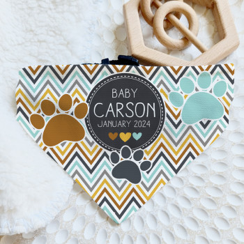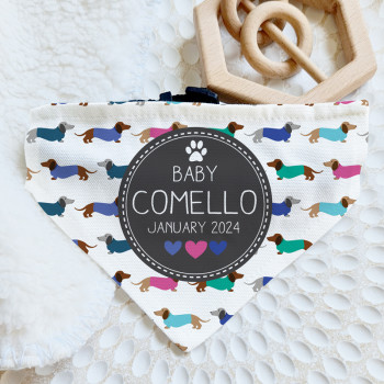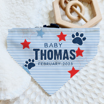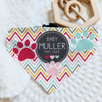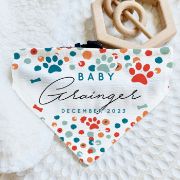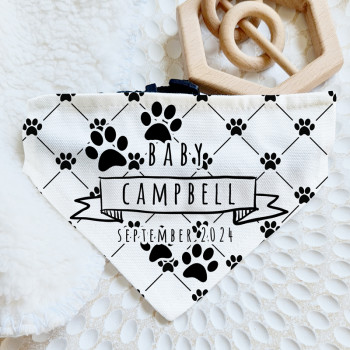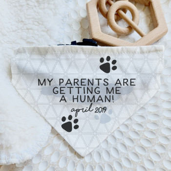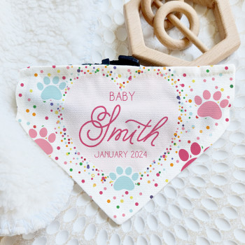 Furry Peeps Personalised Baby Announcement Dog Bandanas are the ultimate way to announce a pregnancy to your loved ones. Featuring a printed fabric triangle threaded onto a collar for easy removal. Your pooch will be the centre of attention wearing our PAW-some Personalised Baby Announcement Dog Bandanas. The perfect way to keep your pooch involved with the new arrival and great for baby showers! Shop our full pet range over at Furry Peeps
