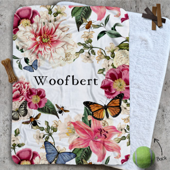 Furry Peeps Personalised Dog Luxe Sherpa Blankets are made from a luxe fluffy sherpa fleece and are Stain resistant and make a great pet snuggle buddy for your furry friend! Thick and fluffy and printed on one side with a lush sherpa fleece on the reverse our blankets are finished with a decorative blanket stitch that will withstand years of use. Not only will they keep your furry peeps warm they look great too!