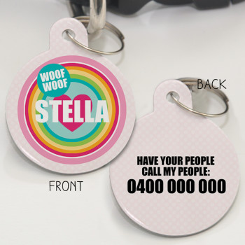 Made from a durable plastic, Furry Peeps Personalised Pet Id Tags are so PAWsome and are the perfect fashion accessory for your pooch. Featuring your pets name printed onto the front and an option to have a contact phone number on the back, your pooch with be rocking our Id tags for years to come. Waterproof, really lightweight and chip/scratch resistant, our designs are imprinted into the plastic so they wont rub off. Shop our full pet range over at Furry Peeps